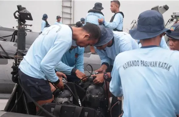 Hải quân Indonesia đang chuẩn bị lặn tìm chiếc máy bay. Ảnh: EPA