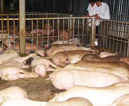 Chi cục Thú y tỉnh Long An đang tăng cường giám sát, lấy mẫu kiểm tra đàn heo đang nuôi trong chuồng của bà Trinh, ông On và ông Nai.