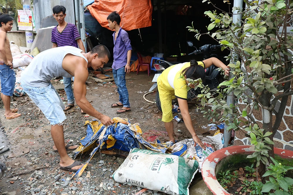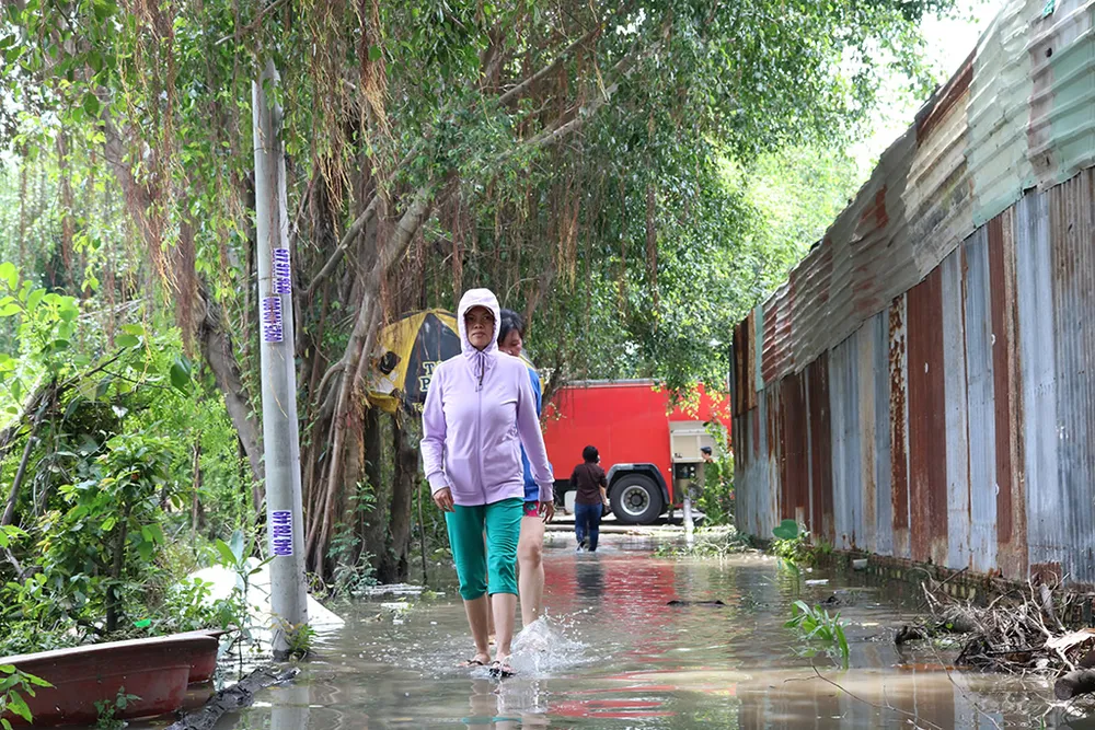 Liên quan đến sự cố vỡ bờ bao tại cống hộp số 4, phường Thạnh Xuân (quận 12, TP.HCM) mặc dù lực lượng chức năng đã nhanh chóng khắc phục, bơm nước ra ngoài. Tuy nhiên, trong sáng 17-10, nhiều khu vực tại đây vẫn còn ngập nước, nhiều nơi bùn đất ngập dày, nước vẫn còn bốc mùi khó chịu.