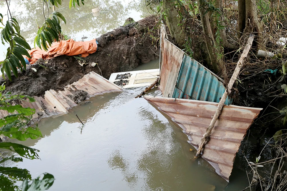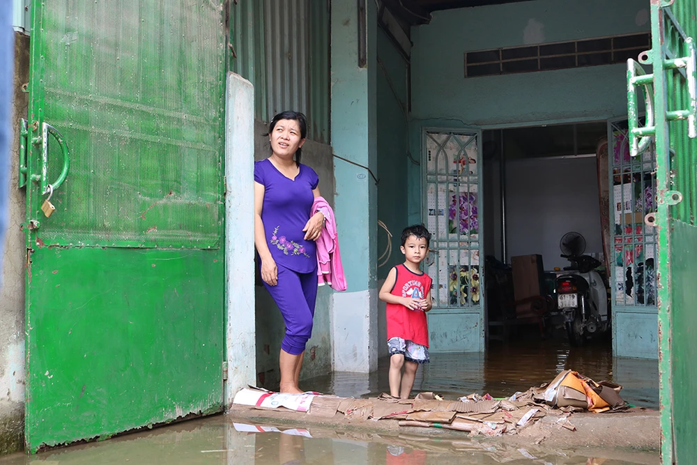 Sự cố vỡ bờ bao khiến nước tràn vào nhà dân ở quận 12 gây ngập nặng.