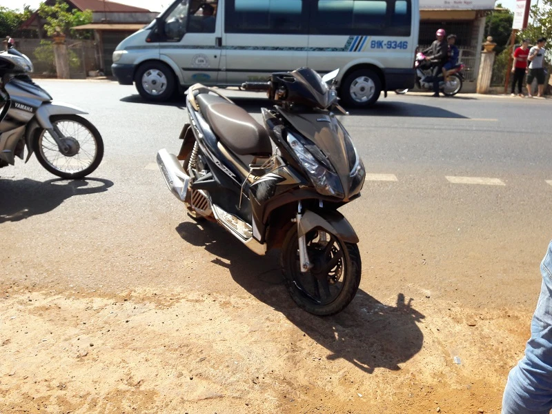 Chiếc xe Air Blade bị hư hỏng sau va chạm (HÀ PHƯỢNG)