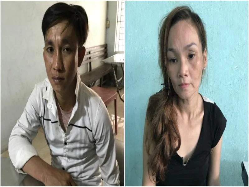 Lý Hoàng Quang Long và Huỳnh Thị Ngọc Hiền tại cơ quan điều tra.