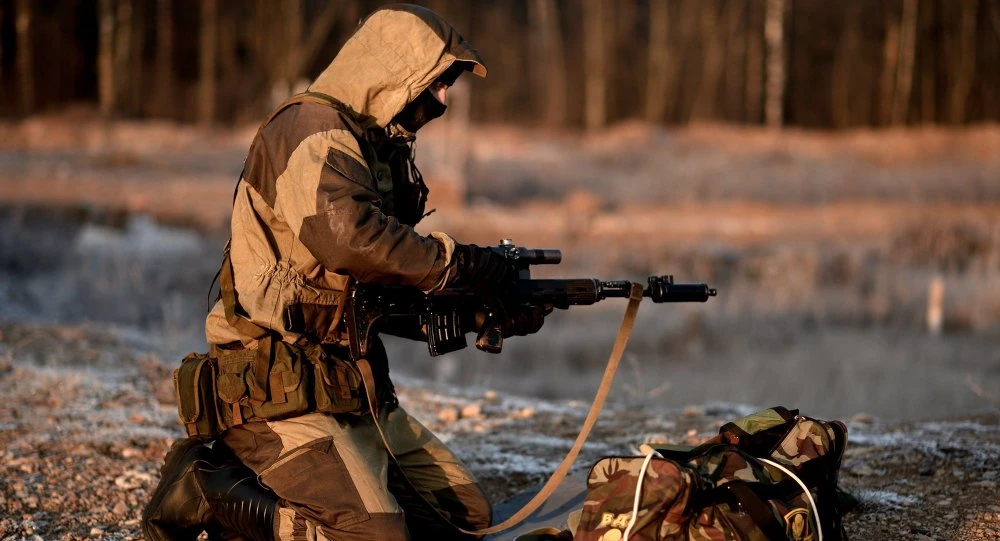 Một thành viên của đơn vị phản ứng đặc biệt tập luyện trước khi làm nhiệm vụ ở Dagestan (Ảnh: Sputnik News)