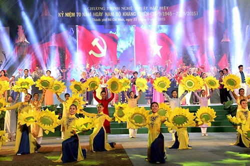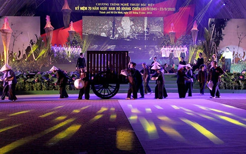 Chương trình sân khấu hóa gồm 2 phần: “Nam bộ thành đồng tổ quốc” và “Viết tiếp trang sử vàng”. Mỗi phần có nhiều tiết mục nghệ thuật được dàn dựng công phu, giúp khái quát lại quá trình đấu tranh kiên cường của quân và dân Nam bộ từ sau cột mốc lịch sử 23-9-1945 đến đại thắng mùa xuân năm 1975.