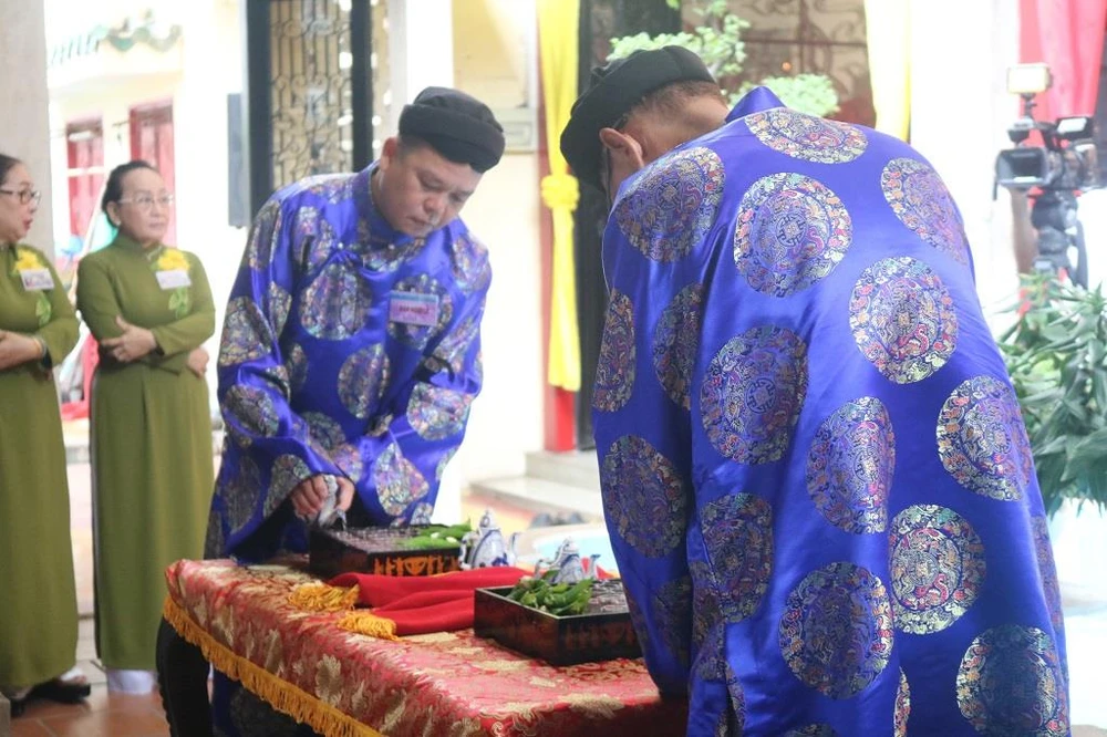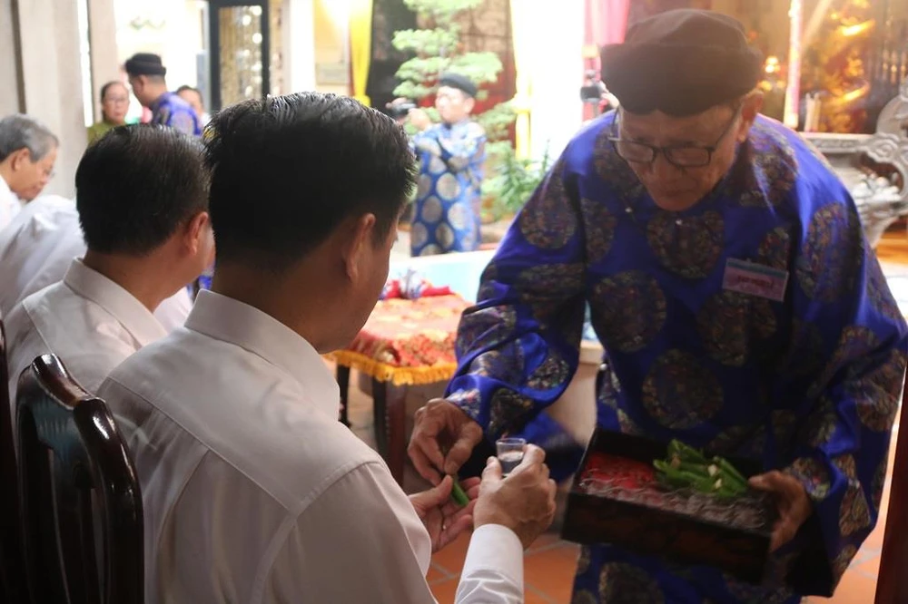 Ban quý tế mời trầu, rượu đại diện lãnh đạo TP, các sở, ban, ngành và người dân đến dự lễ giỗ.