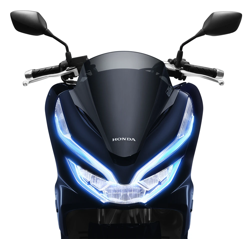 Điểm nhấn của thiết kế PCX HYBRID nằm ở màu xanh lam đặc trưng. Màu sắc này không chỉ bao trùm lên toàn bộ thân xe mà còn bao phủ một cách tinh tế lên phía sau chóa đèn của dải đèn định vị LED cùng logo HYBRID, tạo hiệu ứng độc đáo về mặt thị giác và giúp toát lên vẻ hiện đại và cao cấp cho tổng thể mẫu xe. PCX HYBRID sở hữu tem thiết kế 3D sang trọng.