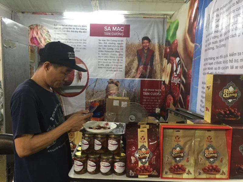 Doanh nghiệp cho biết lần đầu tiên tham gia Hội chợ Xuân để quảng bá sản phẩm Táo đỏ trồng ở sa mạc Tân Cương rất tốt cho sức khỏe