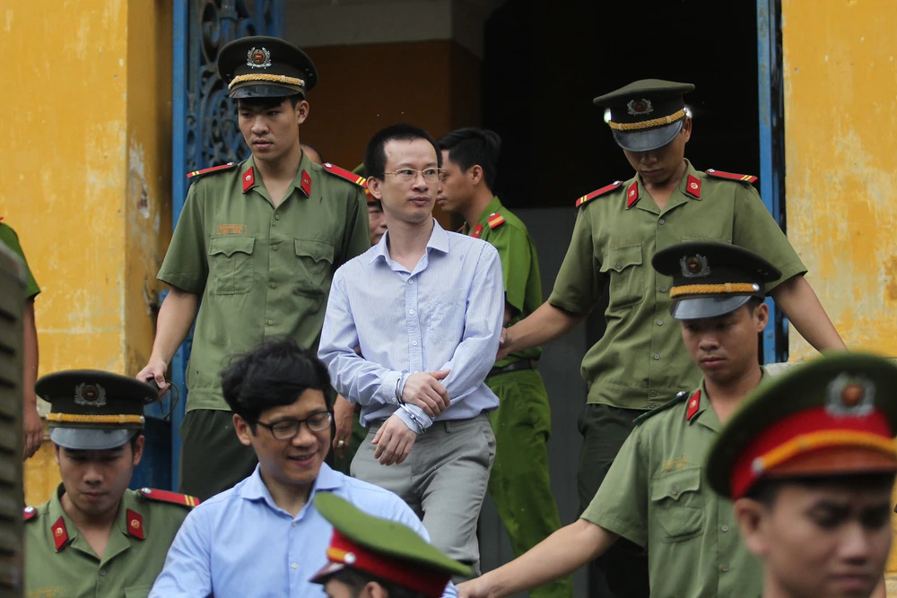 Các bị cáo được dẫn giải về trại sau phiên xử sáng.