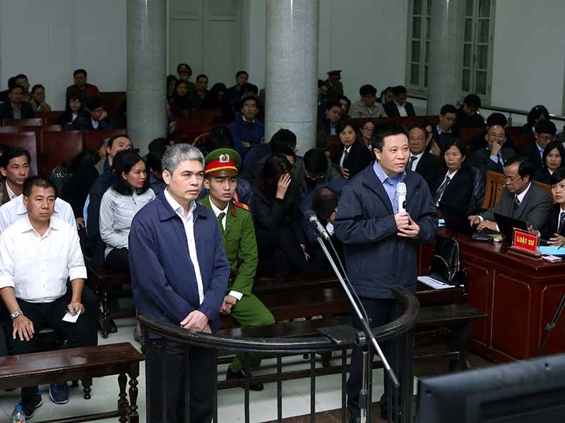 Bị cáo Nguyễn Xuân Sơn (trái) và bị cáo Hà Văn Thắm tại phiên tòa xét xử. Ảnh: TTXVN