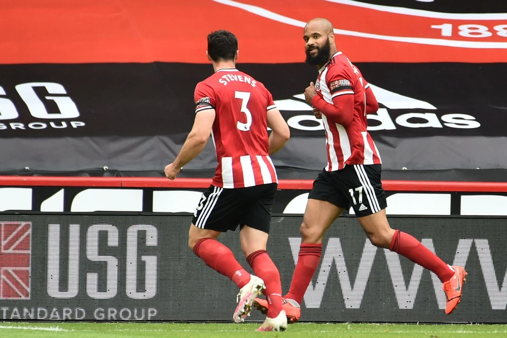 Sheffield United có hai lần ăn mừng bàn thắng trong hiệp 1. ẢNH: 2020 Pool