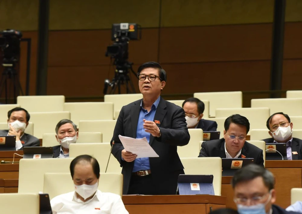 ĐB Hoàng Đức Thắng nói cần tiết kiệm, nếu trang bị tàu bay, thuyền cho CSCĐ thì phải đánh giá tác động. Ảnh: QH