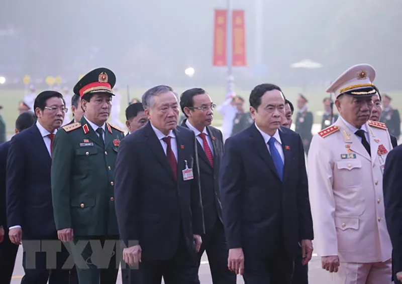 Đại biểu dự Đại hội XIII của Đảng vào Lăng viếng Chủ tịch Hồ Chí Minh. Ảnh: VGP