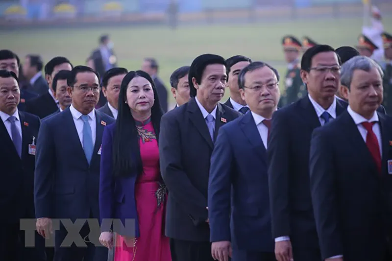 Đại biểu dự Đại hội XIII của Đảng đặt vòng hoa và vào Lăng viếng Chủ tịch Hồ Chí Minh. Ảnh: TTXVN