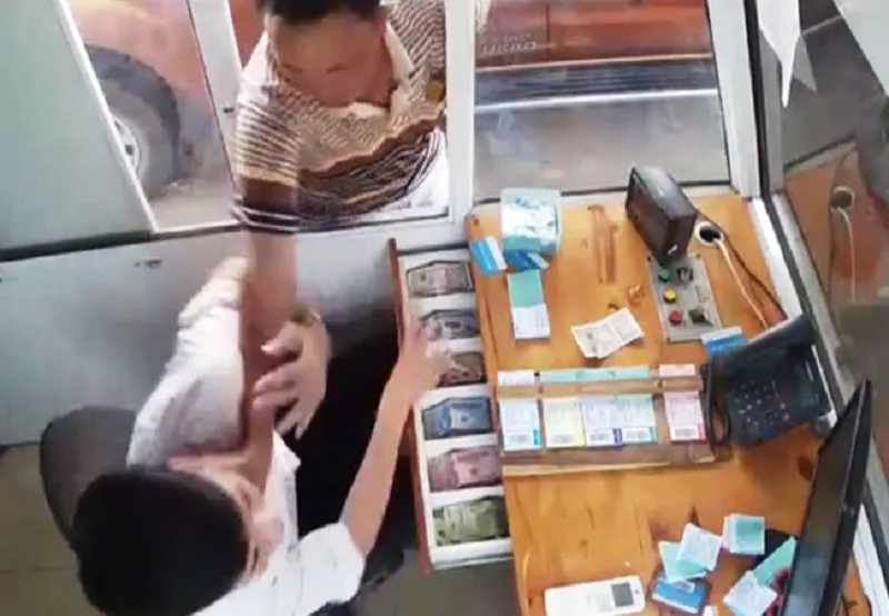 Kiểm lâm xông vào trạm thu phí đánh nhân viên. (Ảnh cắt từ clip)