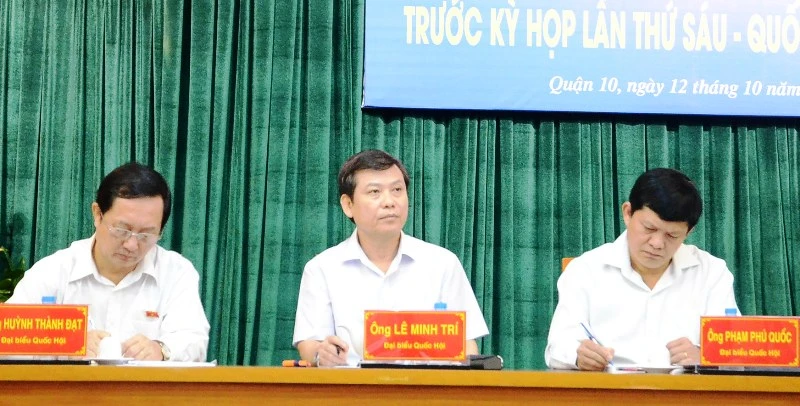 Sáng 12-10, ông Lê Minh Trí - Viện trưởng VKSND Tối cao cùng các ông Huỳnh Thành Đạt - Giám đốc ĐH Quốc gia TP.HCM, Phạm Phú Quốc - Phó viện trưởng Viện Nghiên cứu phát triển TP.HCM, đã có buổi tiếp xúc với cử tri quận 10.