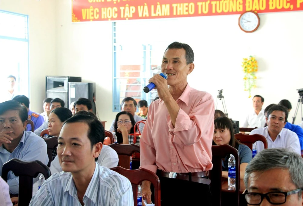Cử tri xã Thạnh Tiến góp ý tại buổi tiếp xúc với đại biểu QH ngày 28-6. Ảnh: CT