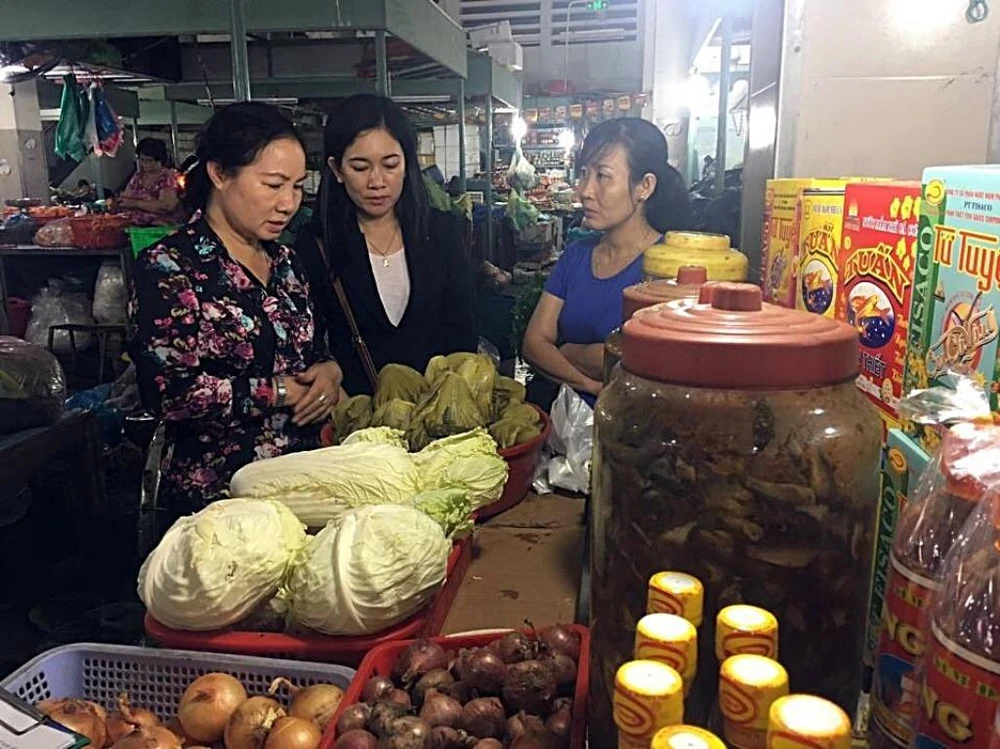 Bà Nguyễn Thị Phúc(bìa trái) xuống chợ kiểm tra thực phẩm bẩn. Ảnh: KH