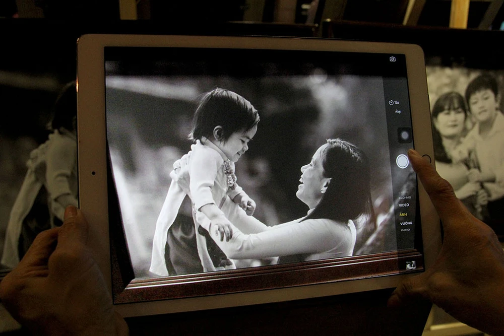 Tình mẫu tử qua tay máy Thành Xuân Anh đang được khách tham qua lưu lại. Ảnh: HOÀNG GIANG