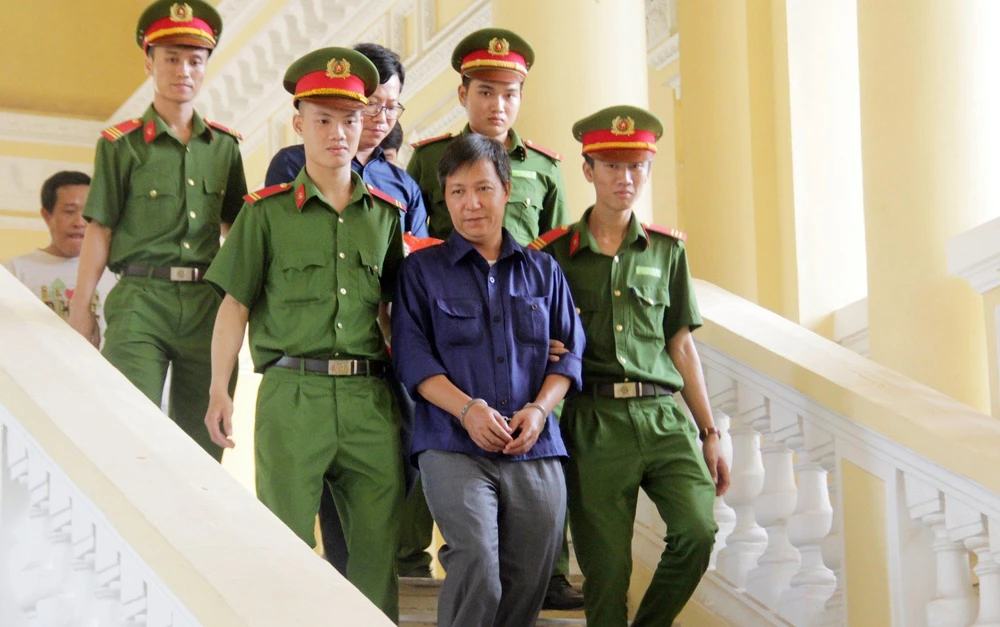 Các bị cáo được dẫn giải ra phòng xử sáng nay.