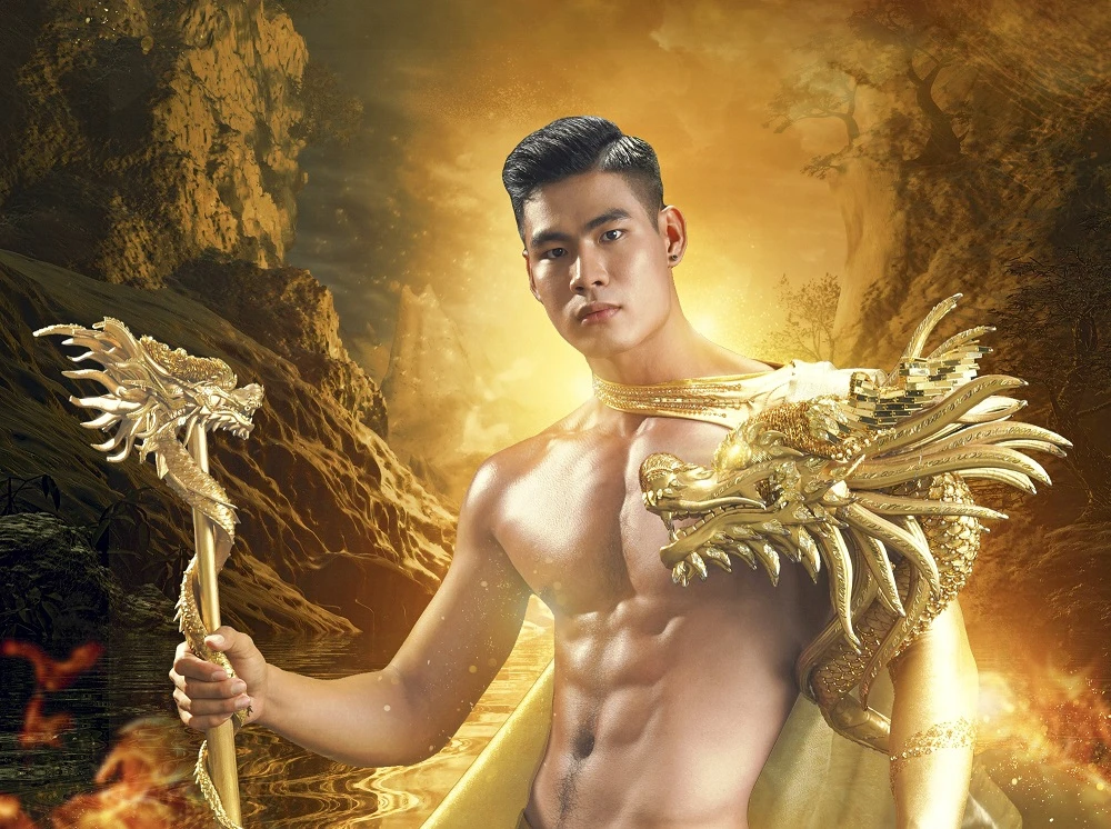 Giữa dàn thí sinh, đại diện Việt Nam nổi bật với dáng vóc cường tráng, mạnh mẽ cùng gương mặt nam tính. Trong phần thi dạ phục, bộ vest do NTK Chung Thanh Phong thực hiện riêng cho Danh Chiếu Linh đã giúp chàng trai gốc Khmer gây ấn tượng với diện mạo lịch lãm, sang trọng.