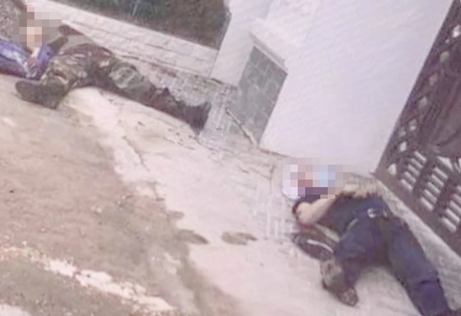 Hiện trường hai nạn nhân bị bắt chết trước cổng căn biệt thự.
