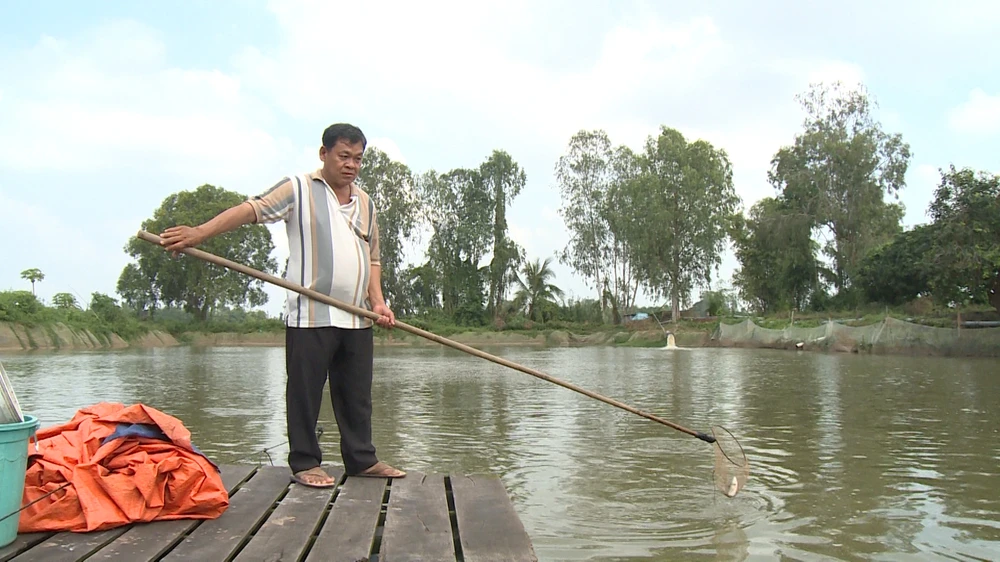 Nông dân tham gia chuỗi liên kết cá tra của Công ty Thuận An đang khốn đốn vì chủ DN biệt tích (ảnh: nông dân Nguyễn Văn Nghiệp hộ nuôi cá tra tham gia chuỗi liên kết ), ảnh CTV Đ.C