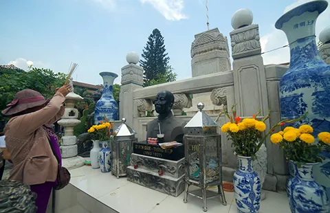 Trong khuôn viên của Bảo tàng Mỹ thuật TP.HCM, ở khoảng sân giữa những tòa nhà kiểu Pháp từng một thời là tư gia của chú Hỏa (Hui Bon Hoa), một trong những người giàu có nổi tiếng ở Nam kỳ xưa kia, có một pho tượng đồng cao lớn. Đó là tượng một người đàn ông lớn tuổi đầu trọc, râu cá chép, mặc áo thụng phổ biến kiểu Mãn Thanh, ngực đeo đầy huân chương, hai tay cầm những cuộn giấy. Nhân vật này chính là Quách Đàm, hay còn gọi là chú Quách, một phú hộ người Hoa cũng nổi tiếng giàu có không kém chú Hỏa. Pho tượng đã từng một thời gây tranh cãi vì người đòi trả lại chỗ cũ của nó. Vì đâu nên nỗi tượng của chú Quách lại phải phiêu bạt trú ngụ nhờ nhà cũ của chú Hỏa?