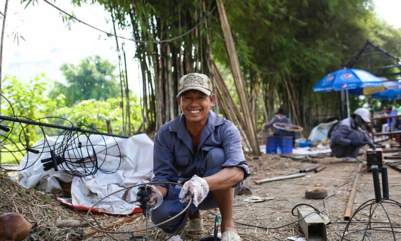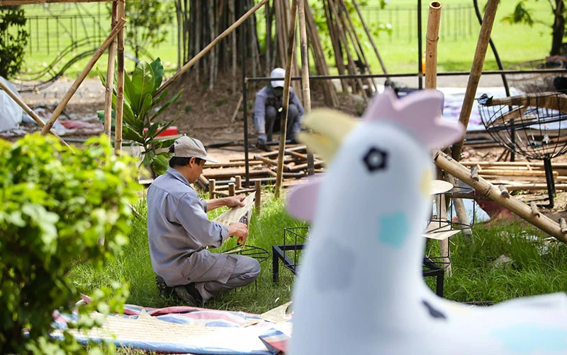 Công nhân đang tỉ mỉ chăm chút cho từng chi tiết của mỗi tiểu cảnh.
