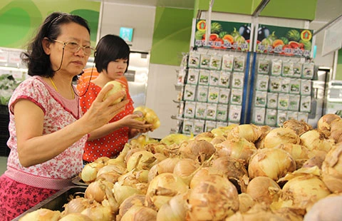 Hành tây Hàn Quốc trong siêu thị. Ảnh: TÚ UYÊN