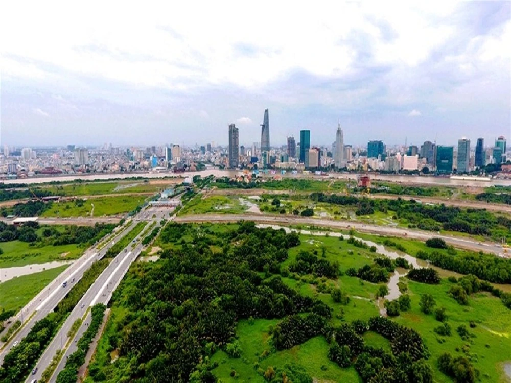 Cụ thể là đại lộ vòng cung, đường ven hồ trung tâm, đường ven sông Sài Gòn và đường châu thổ qua khu lâm viên sinh thái phía Nam, cầu Thủ Thiêm 2 và cầu đi bộ. Dự án đầu tư xây dựng quảng trường trung tâm (quy mô khoảng 20 ha) và công viên bờ sông (khoảng 9 ha) đang được nhà đầu tư triển khai lập đồ án quy hoạch chi tiết tỉ lệ 1:500.