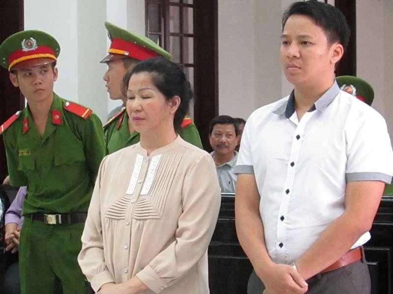 Hai mẹ con bị cáo Nguyễn Thị Tuyết Nghĩa, Nguyễn Ngọc Thạch nói lời sau cùng trước khi tòa nghị án. Ảnh: N.NAM