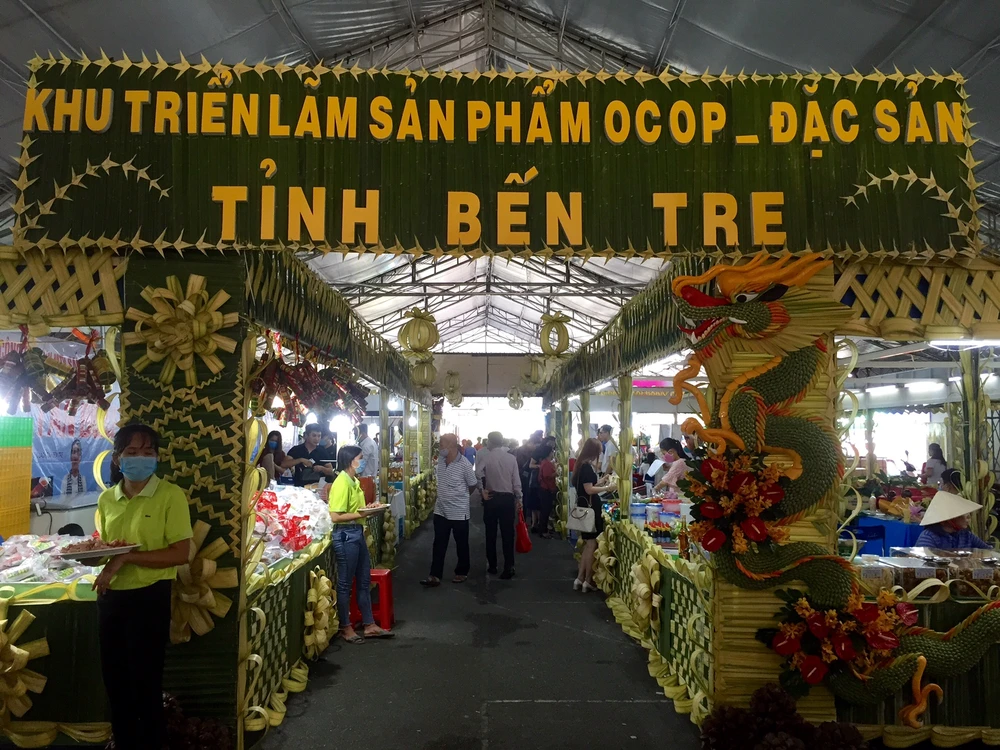 Bến Tre hiện có 59 sản phẩm OCOP được giới thiệu tại hội nghị kết nối cung cầu hàng hoá giữa TP.HCM và các tỉnh năm 2020. Ảnh: TÚ UYÊN