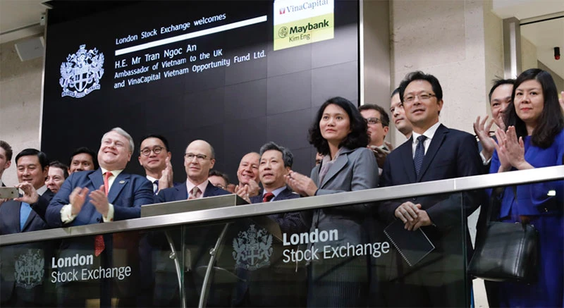 Nhiều đơn vị kinh doanh Việt đang tăng cường gọi vốn quốc tế. Trong ảnh:Quỹ đầu tư VinaCapital trong một lần gọi vốn trên sàn chứng khoán London (Anh). Ảnh: TL