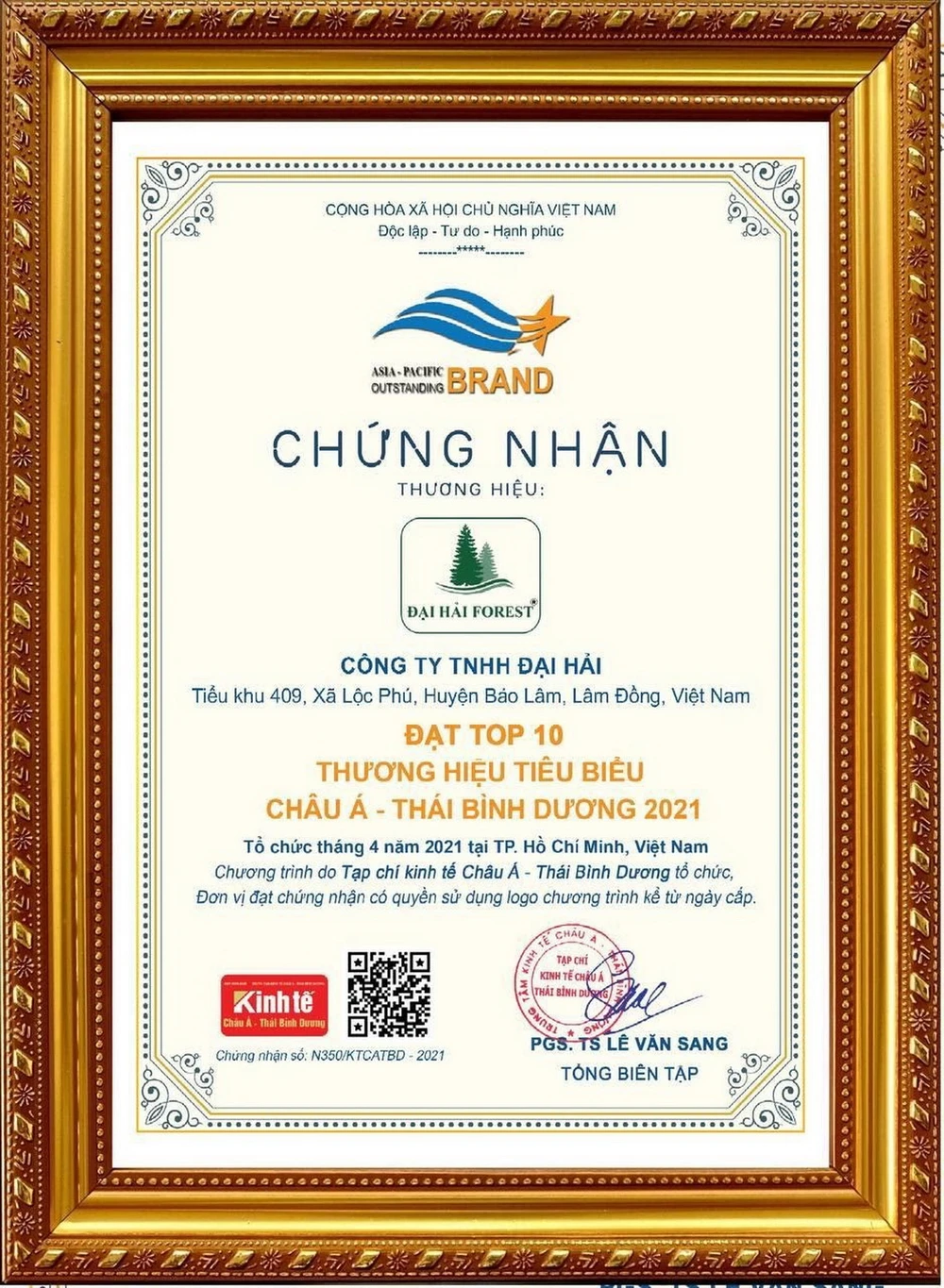 Công ty TNHH Đại Hải đạt “Top 10 thương hiệu tiêu biểu Châu Á - Thái Bình Dương”