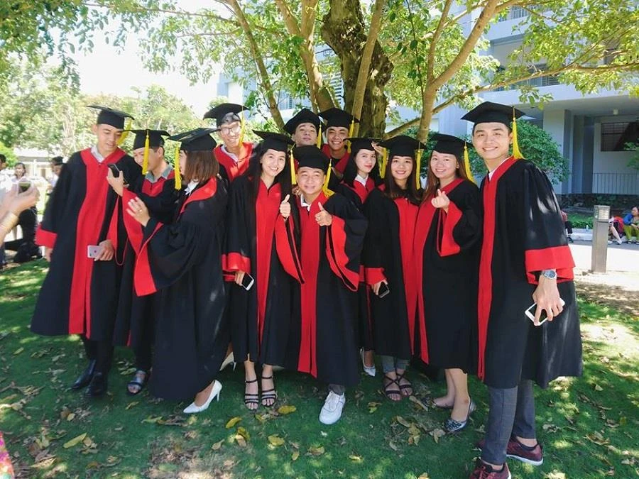 Ngày ra trường là lúc các bạn sinh viên lưu lại kỷ niệm đẹp bên hàng cây xanh.