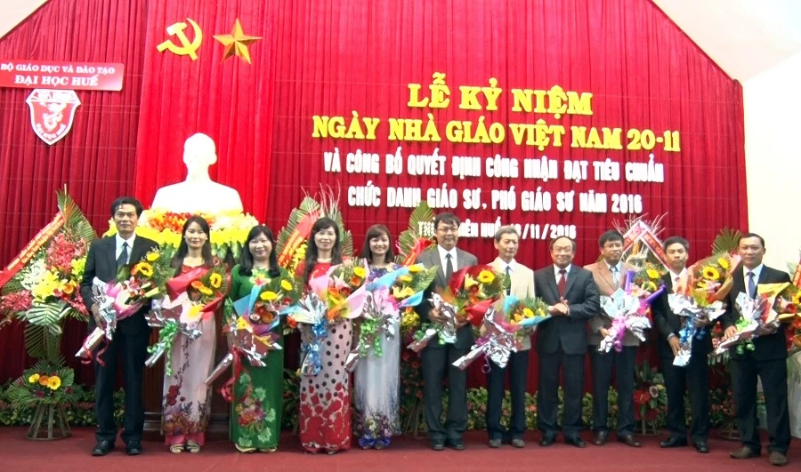 Ngày 18-11, ĐH Huế tổ chức lễ kỷ niệm 34 năm ngày Nhà giáo Việt Nam (20-11-1982 - 20-11-2016) và công bố quyết định công nhận các nhà giáo đạt tiêu chuẩn chức danh giáo sư (GS), phó giáo sư (PGS) năm 2016.