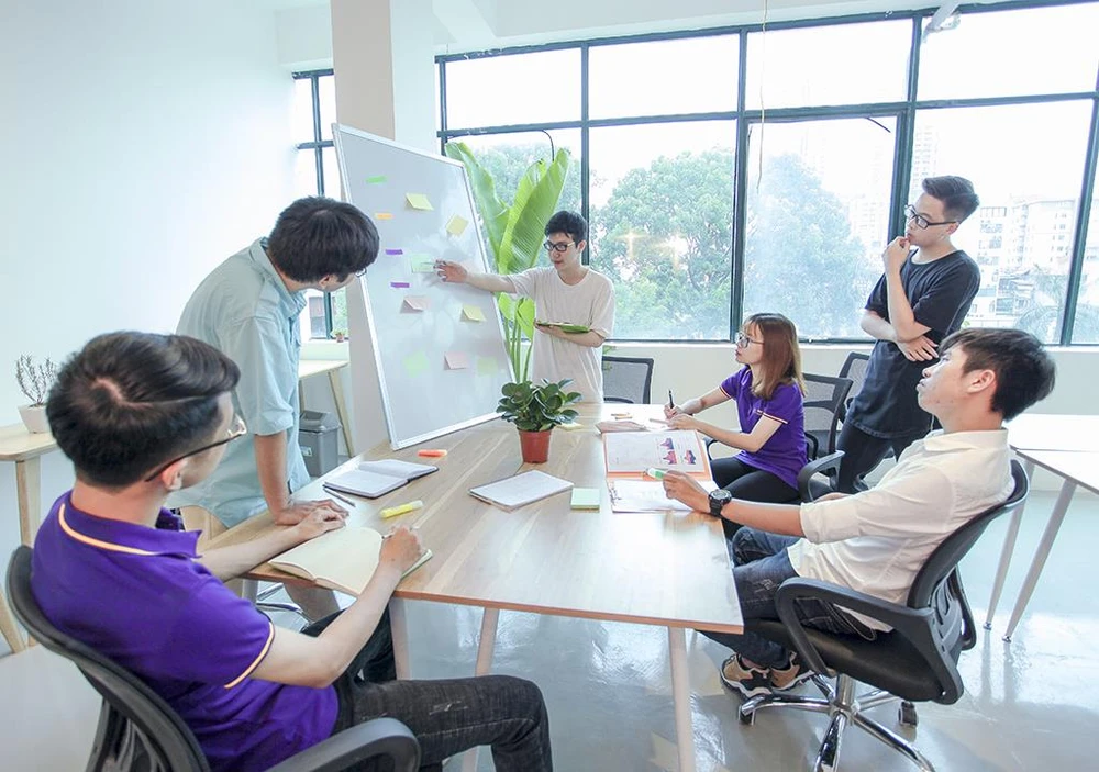 Sinh viên ĐH Phú Xuân đang thảo luận đề tài theo nhóm.