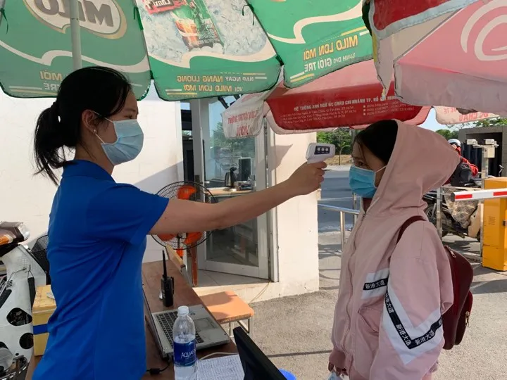 Sinh viên ra vào KTX ĐH Quốc gia TP.HCM được đo thân nhiệt thường xuyên để nắm thông tin sức khỏe.