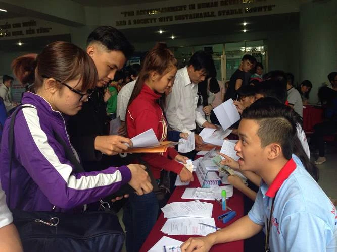 Thí sinh nộp hồ sơ đăng kí xét tuyển. Ảnh: P.ĐIỀN