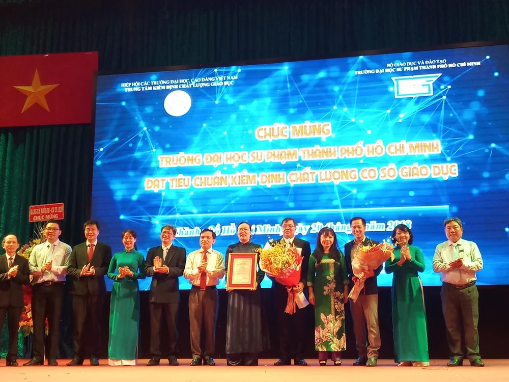 Phát biểu tại buổi lễ, PGS-TS Nguyễn Thị Phương Nga, Giám đốc Trung tâm Kiểm định chất lượng giáo dục - Hiệp hội Các trường ĐH, CĐ Việt Nam, cho biết Trường ĐH Sư phạm TP.HCM là một trong hai trường trọng điểm về đào tạo nguồn nhân lực của cả nước. Trong năm năm qua, trường đã đào tạo hàng ngàn cử nhân, cùng với đó là những công trình khoa học có chất lượng.
