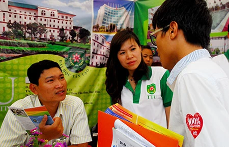 Tìm hiểu thông tin của trường ĐH Tân Tạo tại ngày hội tuyển sinh năm 2014. Ảnh: HTD