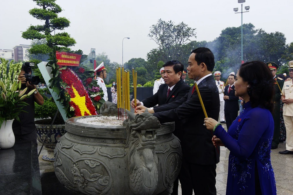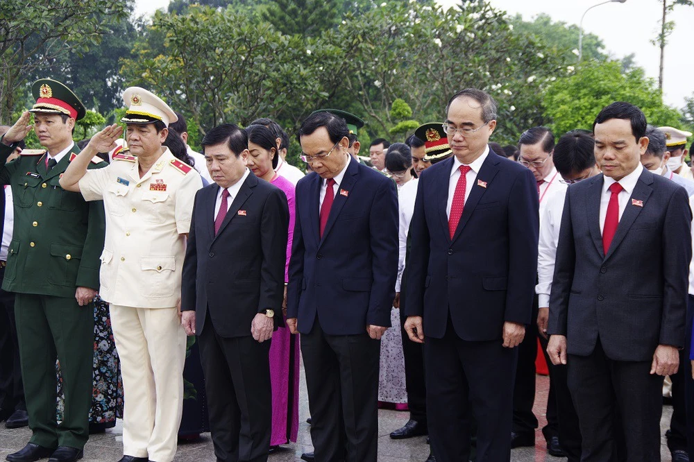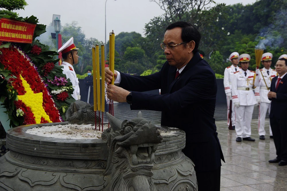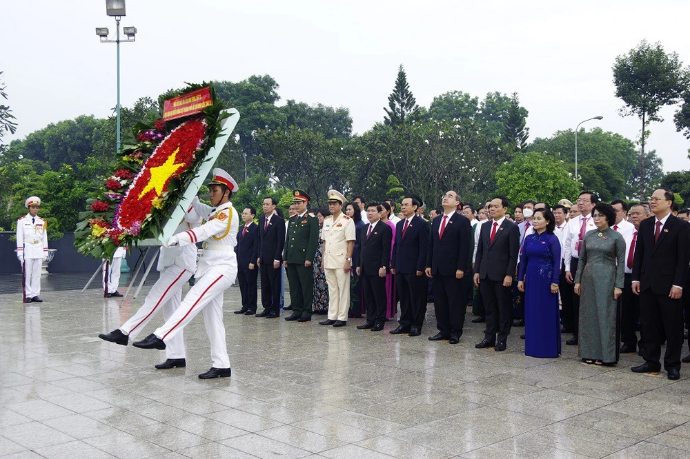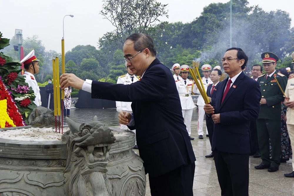 Đoàn viếng với hơn 400 đại biểu do Bí thư Thành uỷ TP.HCM Nguyễn Thiện Nhân dẫn đầu.
