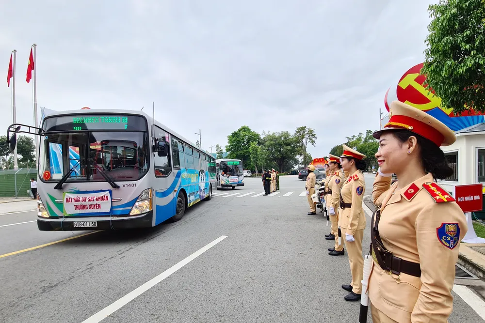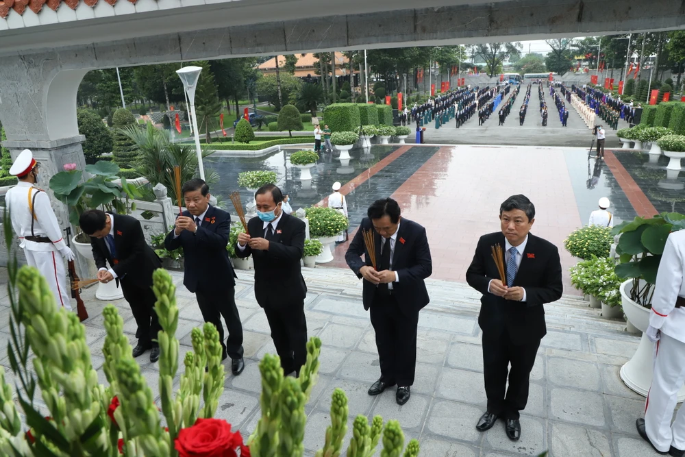 Các đại biểu viếng nghĩa trang liệt sĩ. Ảnh: QUỐC CHIẾN
