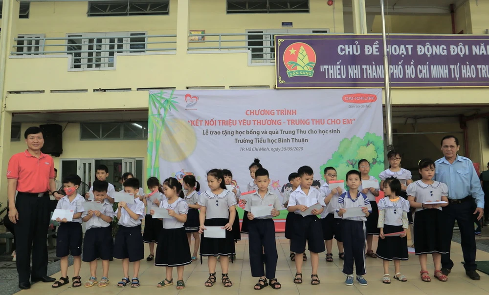 Ngày 30-9, với mong muốn cùng trẻ em có hoàn cảnh khó khăn vui đón Tết Trung thu ấm áp và yêu thương, “Quỹ vì cuộc sống tươi đẹp” của Công ty BHNT Dai-ichi Việt Nam (Dai-ichi Life Việt Nam), lãnh đạo và nhân viên công ty đã tổ chức chương trình “Kết nối triệu yêu thương – Trung thu cho em”. Chương trình đã đến thăm và trao tặng hơn 1.800 bánh trung thu và 40 suất học bổng với tổng trị giá hơn 150 triệu đồng cho tất cả các em học sinh Trường Tiểu học Bình Thuận, quận Bình Tân .