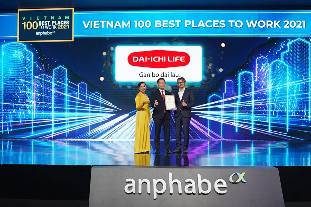 Đồng thời, Dai-ichi Life Việt Nam còn đứng trong Top 47 “Nơi làm việc tốt nhất Việt Nam năm 2021” cho tất cả các ngành nghề, do Mạng cộng đồng nghề nghiệp Anphabe cùng Công ty nghiên cứu thị trường Intage Việt Nam khảo sát và công bố. Lễ trao giải tổ chức và phát trực tuyến trên Facebook, Youtube của Anphabe vào chiều ngày 22-12.