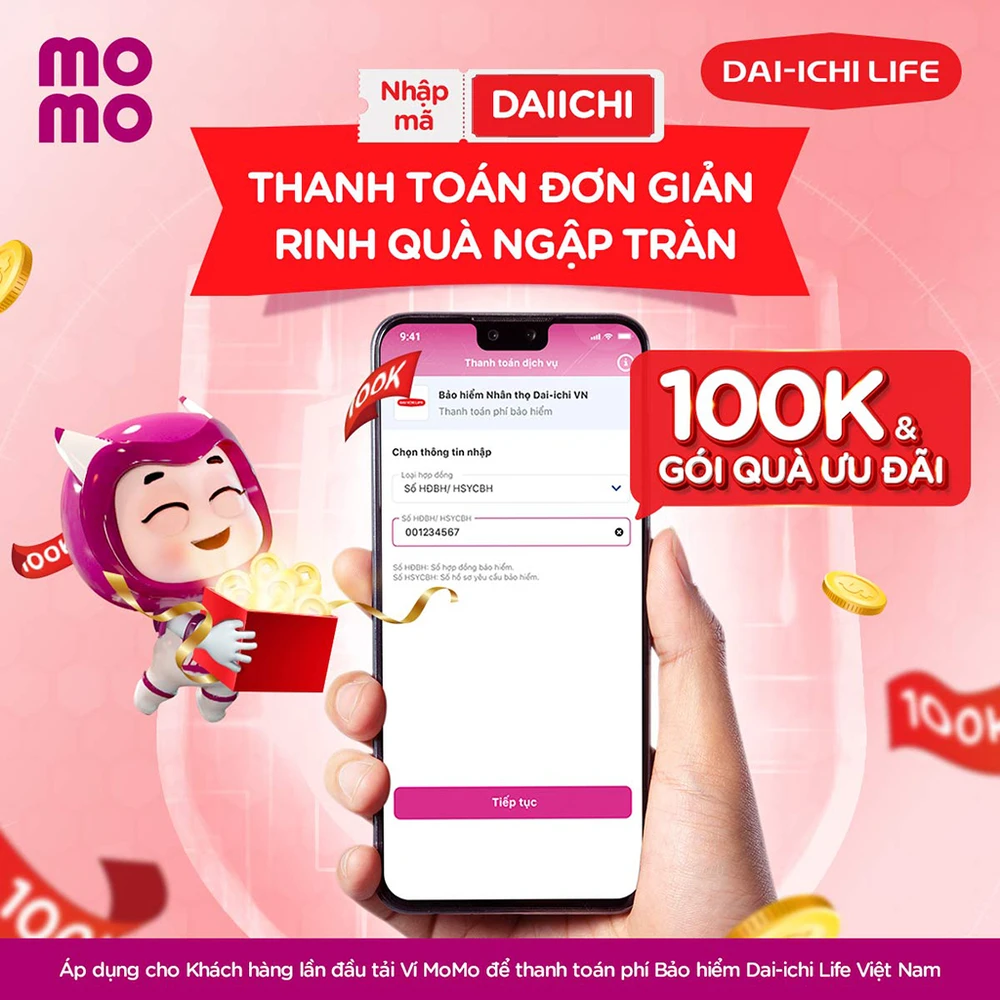 Chương trình diễn ra từ ngày 1-11 đến 31-12-2021, dành cho khách hàng lần đầu thanh toán phí bảo hiểm của Dai-ichi Life Việt Nam qua ví MoMo và được hoàn tiền ngẫu nhiên từ mệnh giá 10.000 đồng đến 100.000 đồng vào “Túi Thần Tài” trên MoMo.