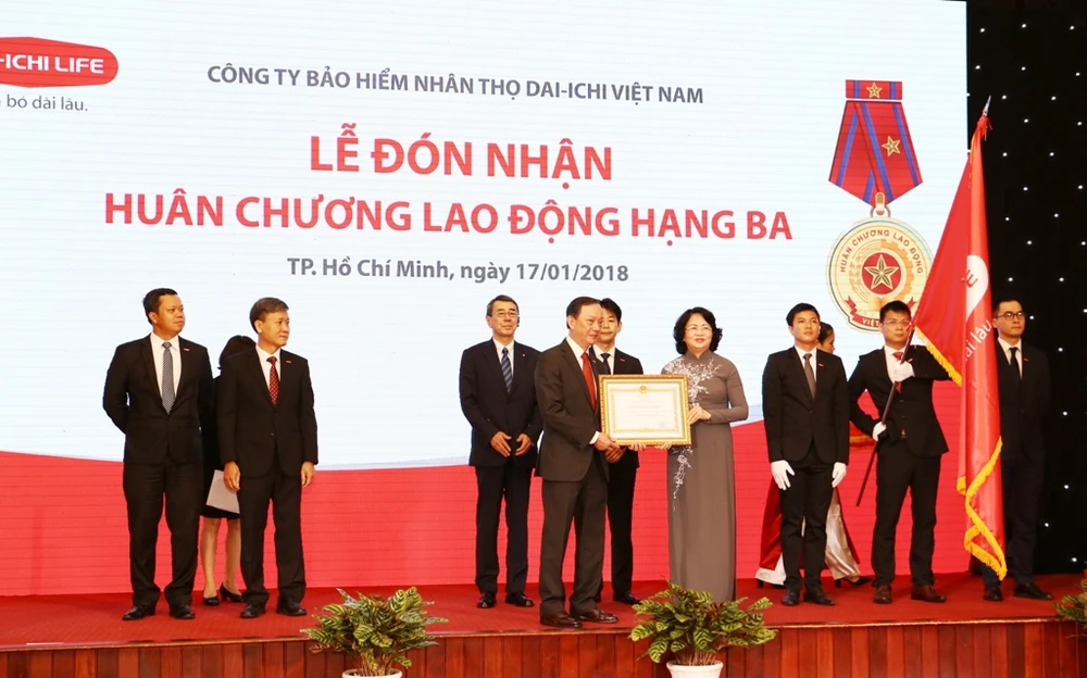 Thay mặt lãnh đạo nhà nước, Phó Chủ tịch nước Đặng Thị Ngọc Thịnh đã thực hiện nghi thức trao huân chương Lao động hạng Ba cho Công ty Bảo hiểm nhân thọ (BHNT) Dai-ichi Việt Nam. Nhân sự kiện này, “Quỹ vì cuộc sống tươi đẹp” của Dai-ichi Việt Nam đã trao tấm séc hỗ trợ 1 tỉ đồng cho Quỹ Bảo trợ trẻ em Việt Nam để thực hiện các chương trình giúp đỡ trẻ em có hoàn cảnh đặc biệt khó khăn trong hai năm 2018-2019.