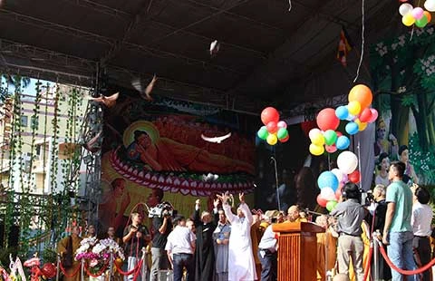 Tham dự buổi lễ có ông Lê Hồng Anh, Ủy viên Bộ Chính trị, Thường trực Ban Bí thư Trung ương Đảng, các lãnh đạo TP cùng sự hiện diện của hàng ngàn chư tăng, Phật tử của 24 quận, huyện trong TP... Tại đây, mọi người đã thắp hương, thực hiện nghi lễ thả bóng bay và phóng sinh chim bồ câu, cầu mong hòa bình, quốc thái dân an, đời sống người dân an lạc, hạnh phúc (ảnh).