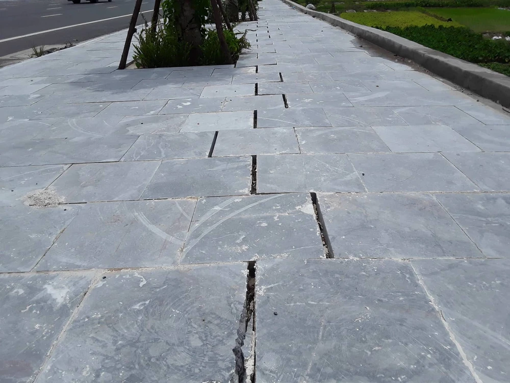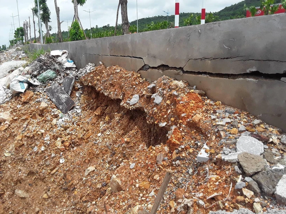 Nghiêm trọng hơn, phía giáp ranh với khu vực nuôi trồng thủy sản của người dân đã xuất hiện hiện tượng sụt, lún, nhiều đoạn gạch lát của hành lang vỉa hè đã bị bật tung. Bên cạnh đó, hai bên tuyến đại lộ, một bên là núi, bên còn lại là khu nuôi trồng thủy sản của người dân nhưng cả hai bên đường đều không dựng bờ kè taluy. Sau mỗi trận mưa, đất trên núi sụt lở tràn ra mặt đường khiến việc lưu thông của người dân gặp nhiều khó khăn và nguy hiểm.