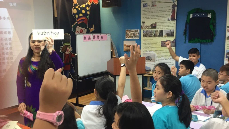 Lớp học tiếng Việt dành cho con em cô dâu Việt tại Đài Loan. Ảnh: PHONG ĐIỀN
